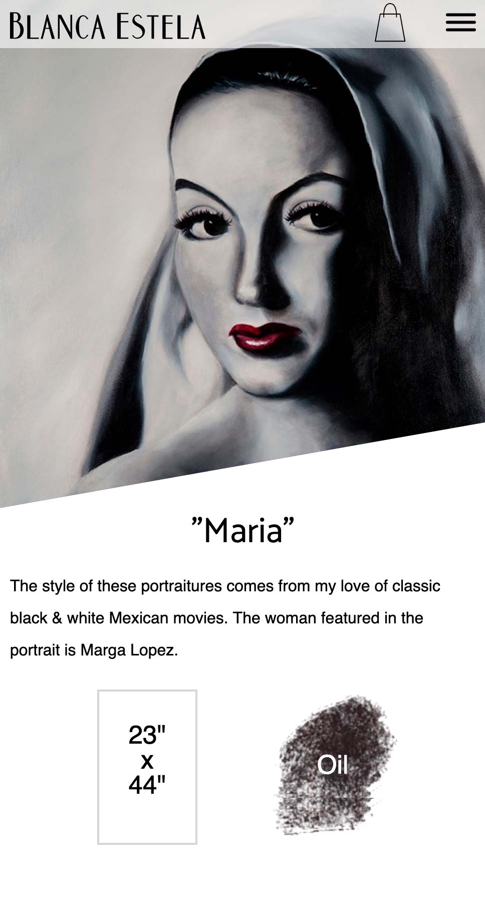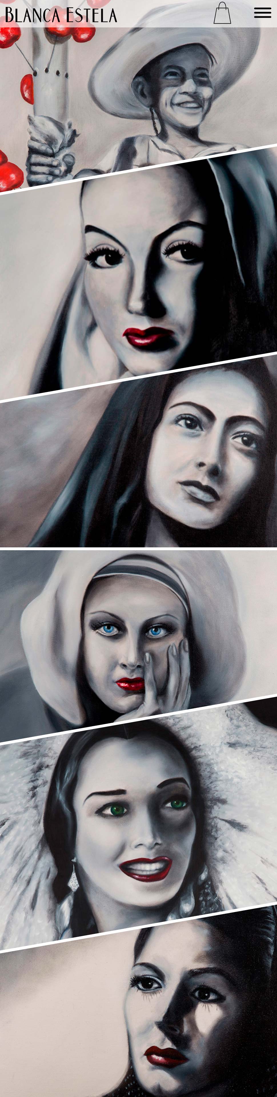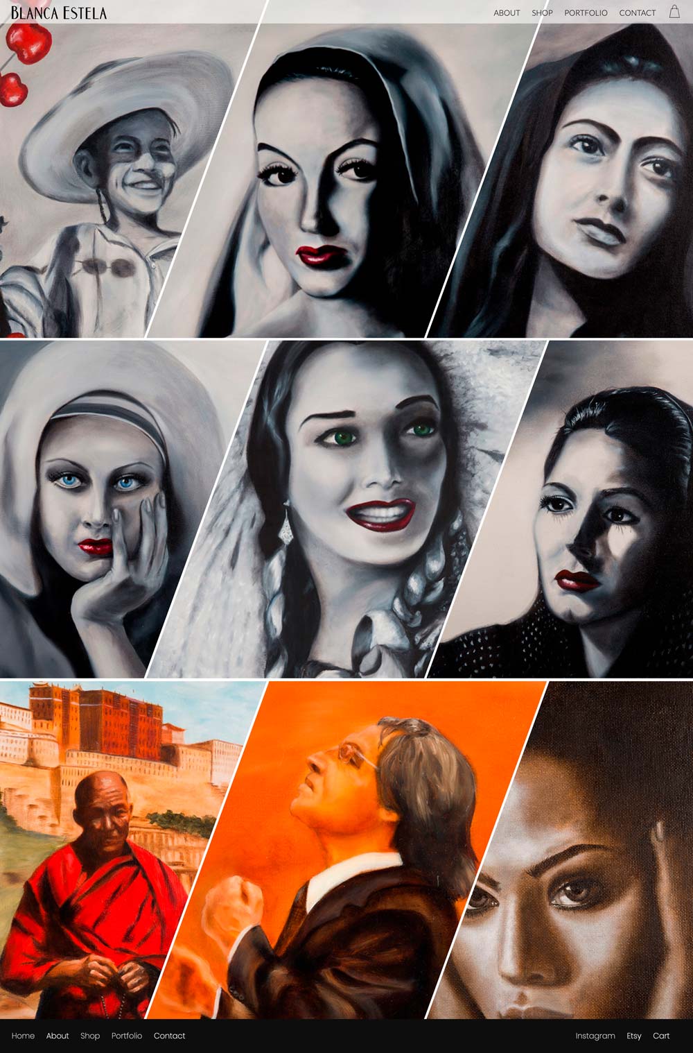 Blanca Estella is an artist from Chicago, IL. As the quality of her skills improved over time, more people noticed and inquired about her work. Requesting a portfolio website to showcase her best work, but also offer them for sale as well. To truly showcase her incredible work, higher quality photos were needed with a photo shoot of all her paintings Along with the website, business cards, exhibition flyers, and shipping materials were also requested.